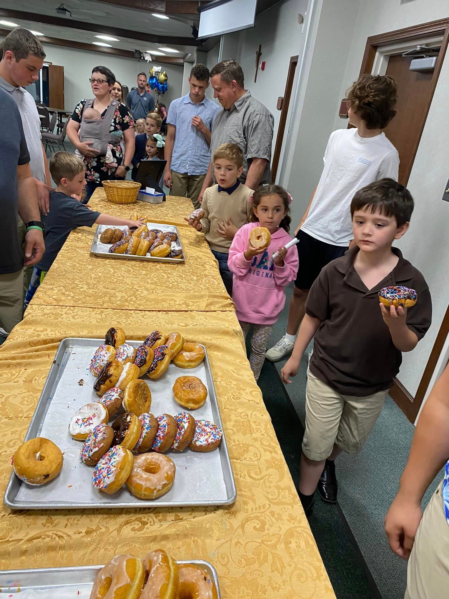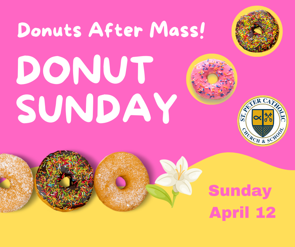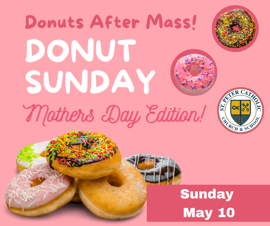 Donut Sunday is a reception for parishioners following the celebration of Sunday Masses the first Sunday of each month.