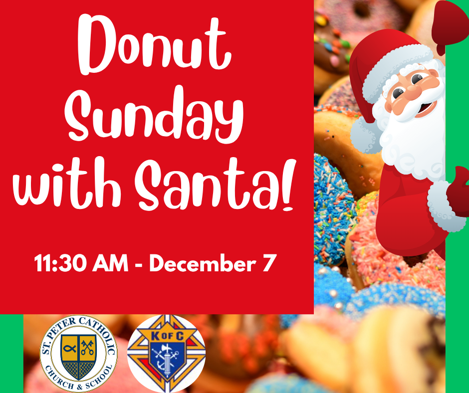 Our next Donut Sunday will be December 7th after 8:30 and 10:30 Mass.