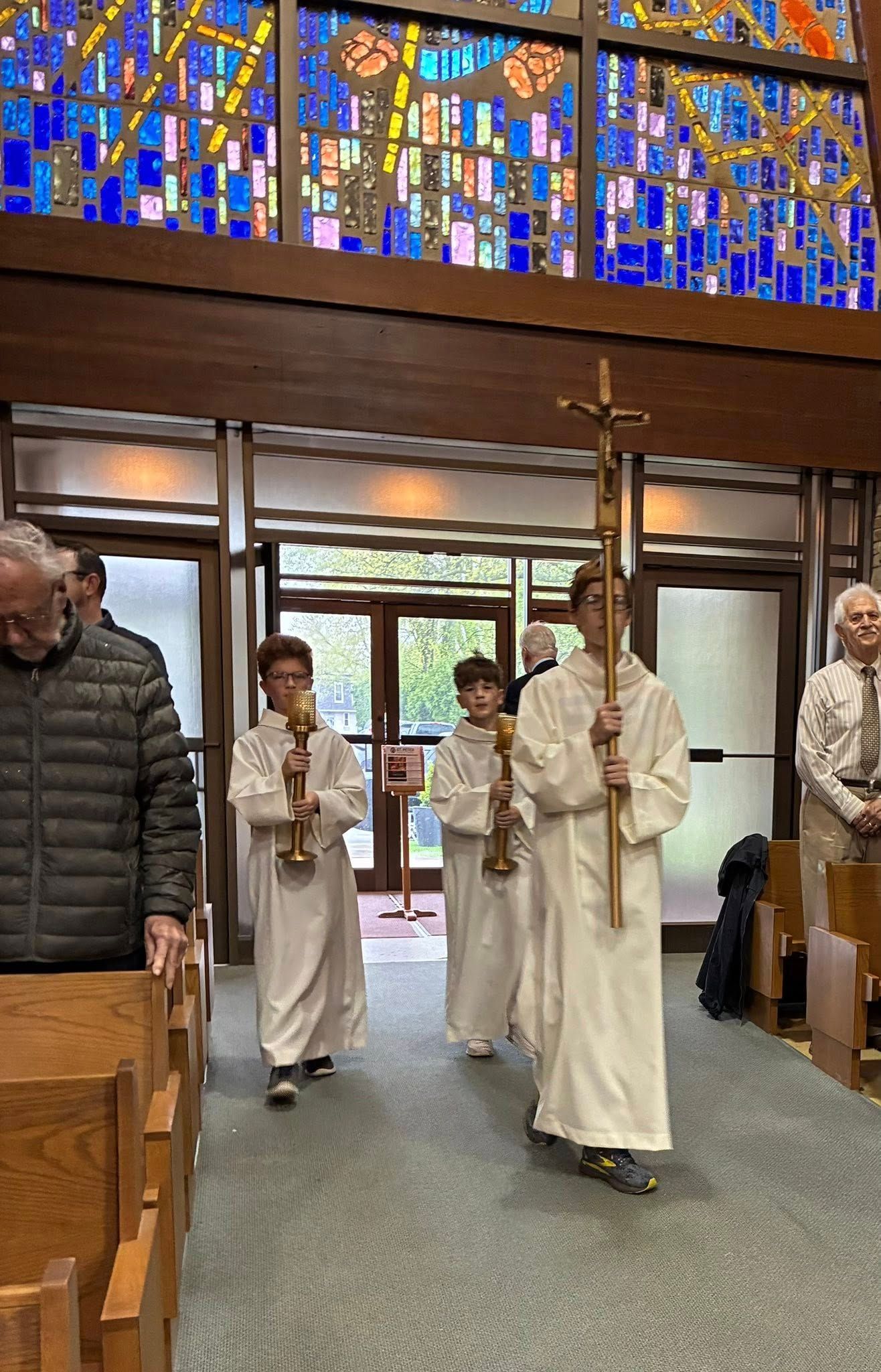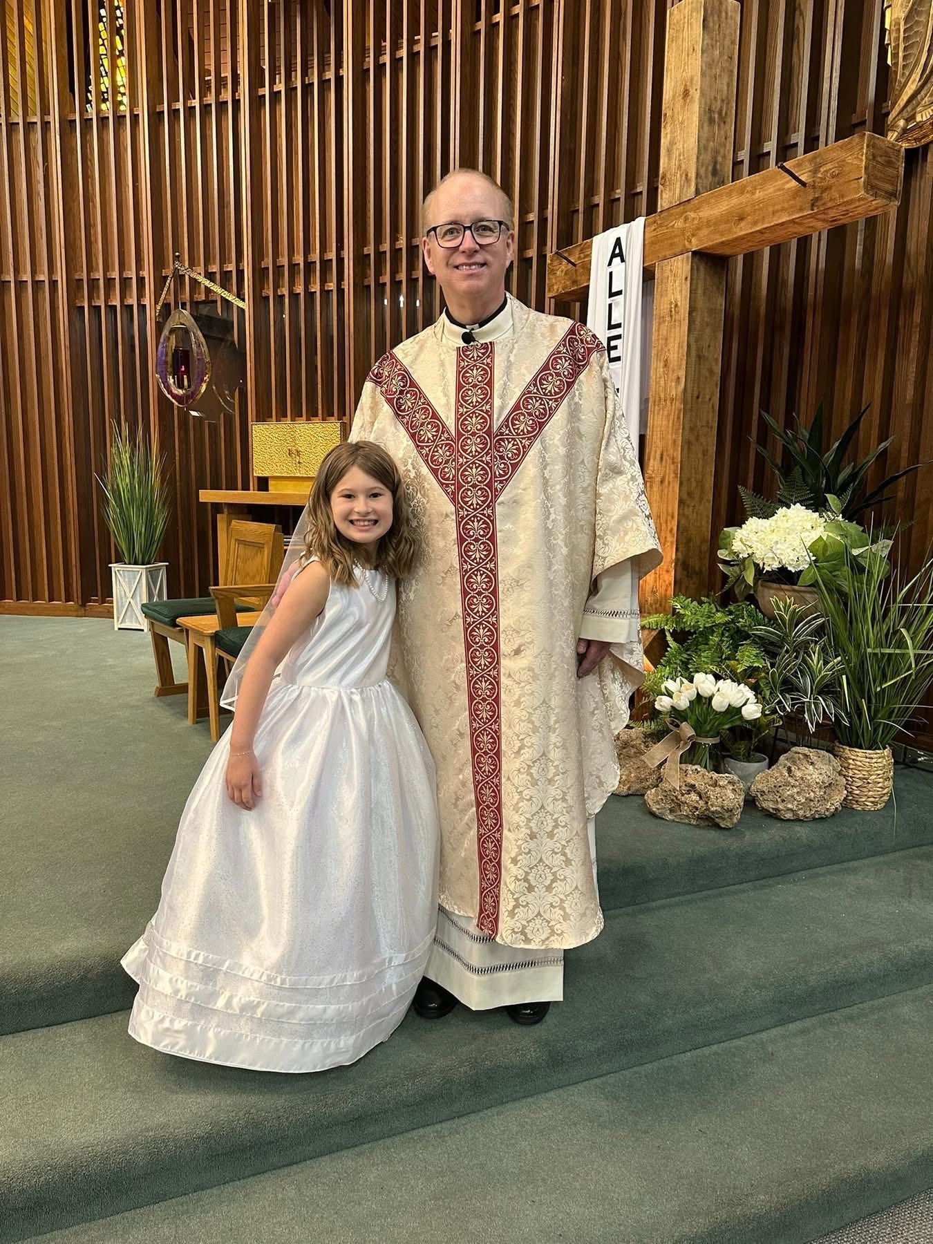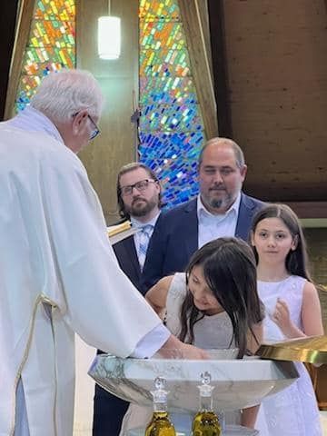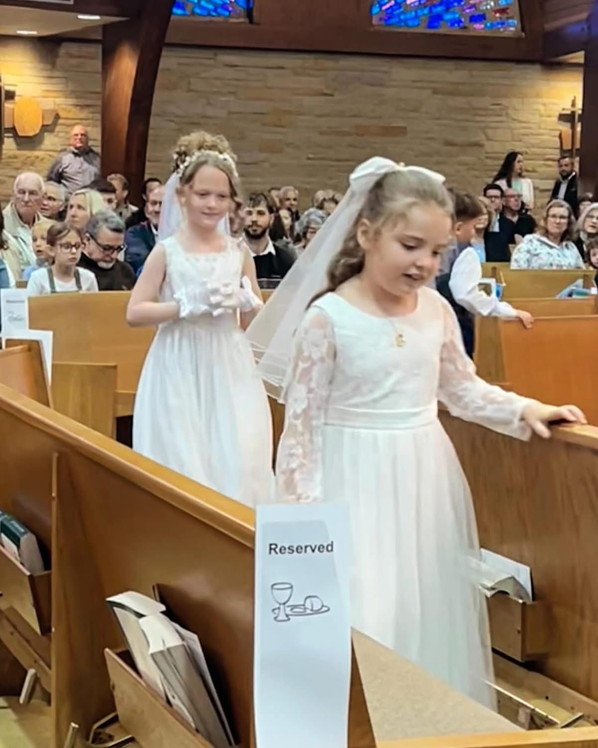 Generally first Eucharist is received by children when they are in second grade at the age of seven. Children must be enrolled in our Catholic school or PSR program in order to receive First Eucharist or Communion. Children must complete first grade PSR before they will be permitted to enroll in our second grade PSR class. Adults wishing to receive first Eucharist must take adult preparation classes beforehand.