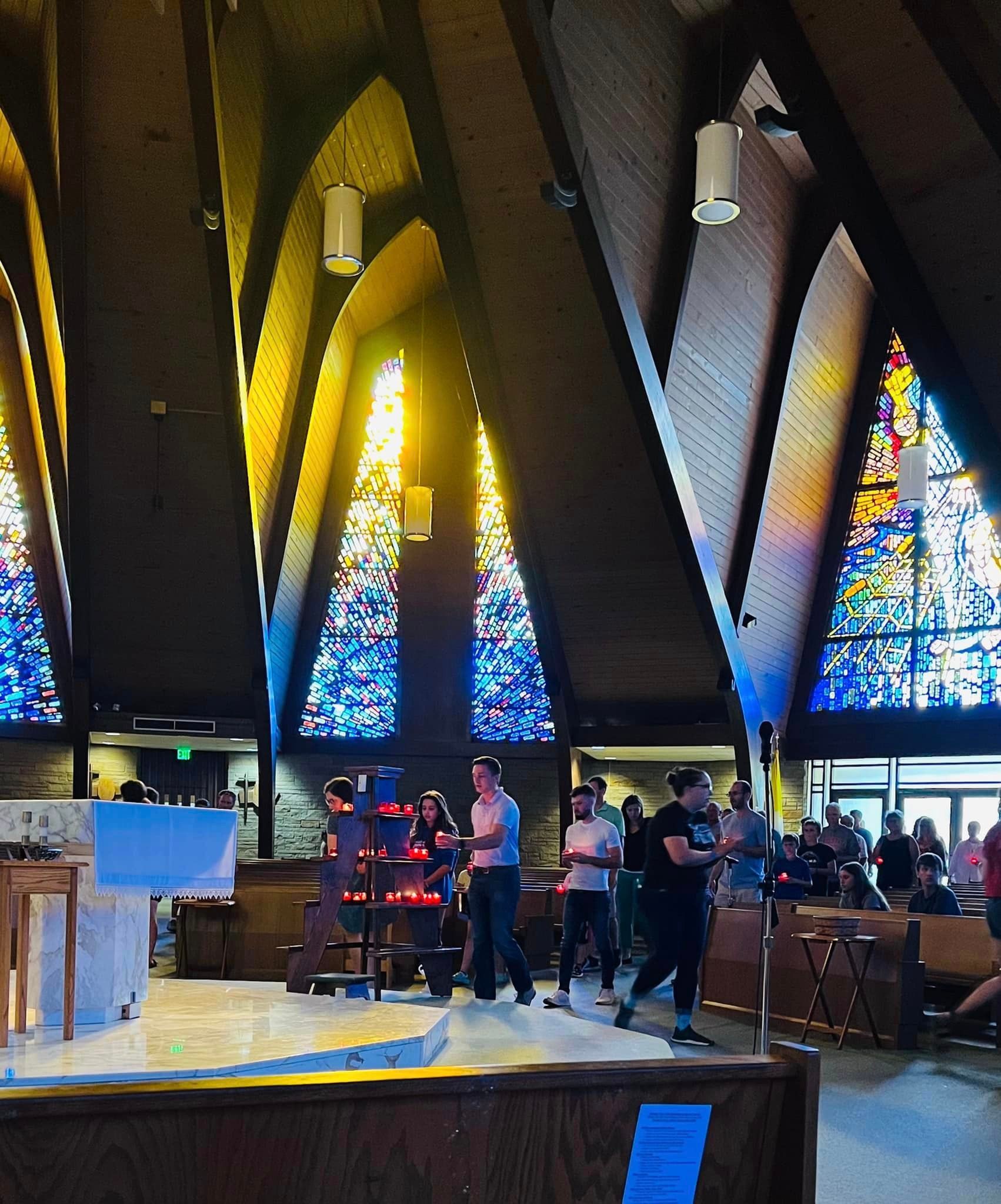 Join us the third Tuesday of every month (usually) for an amazing experience of community, prayer and God’s overwhelming love. The evening begins with a potluck dinner at 5:30pm and a witness by a community member about his or her faith. This is held in the Gathering Space. All are then welcome to process in the church for prayer, featuring adoration of the Blessed Sacrament, music, song, reflection, and typically the opportunity to go to confession if one desires. It is an amazing encounter with Jesus you won’t want to miss, and is part of growing in a way of life that puts Jesus at the center.