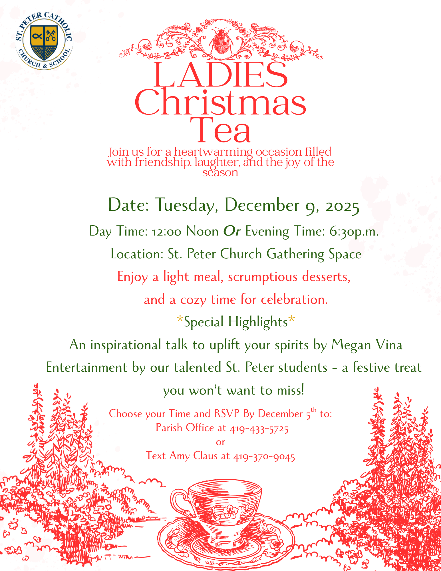 Are you looking for other like minded women or mothers to interact with? We offer several options for women at St. Peter Parish. Contact us for more information.